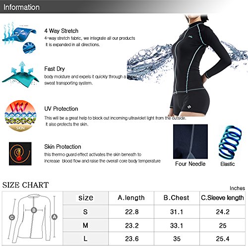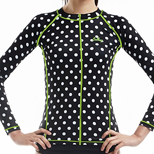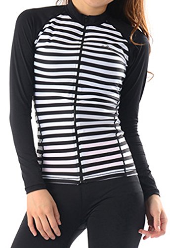 New Beach Surf Rash Guard Women Long Sleeve Full Zip-up Top Swimwear Swimsuit (L, A0315/Dot)