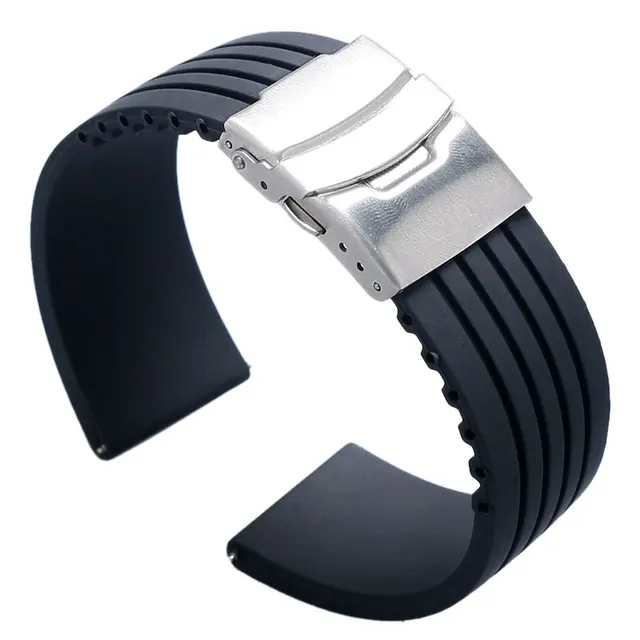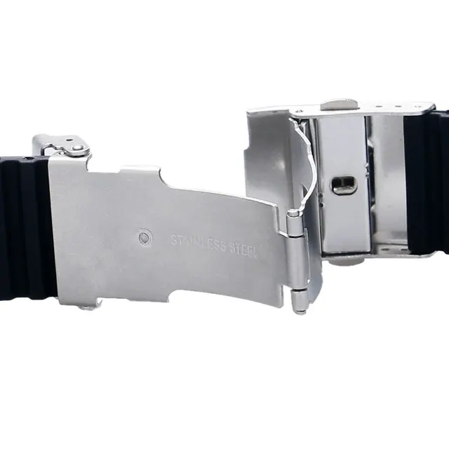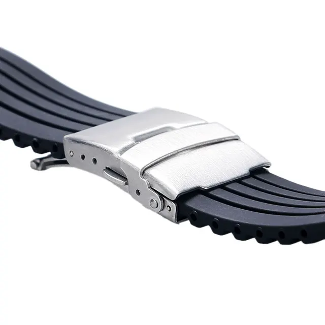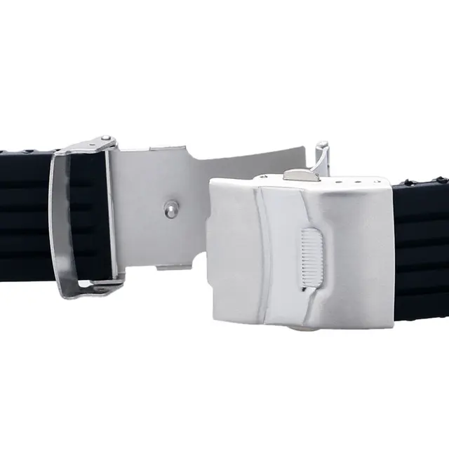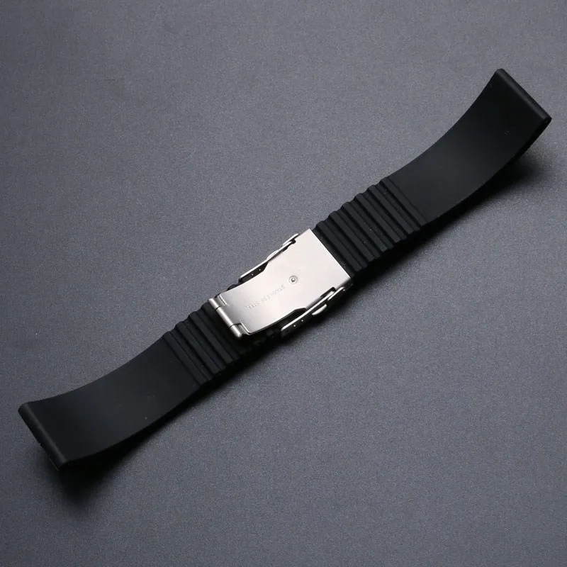 제품 특징:100% 브랜드 새로운 높은 품질밴드 재질: 실리콘버클 유형: 배 걸쇠 안전 및 푸시 버튼.밴드 색상: 블랙밴드 폭: 18/20/22/24 미리메터밴드 두께: approx.4.0mm밴드 길이: approx.19 cm