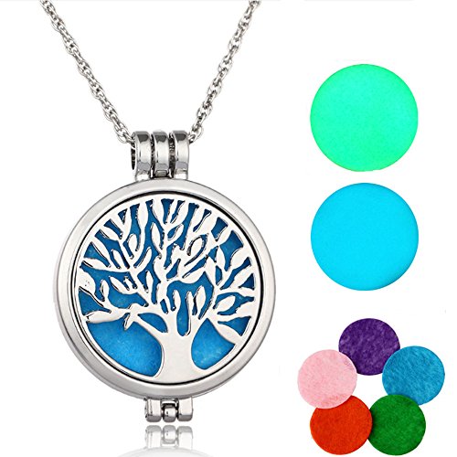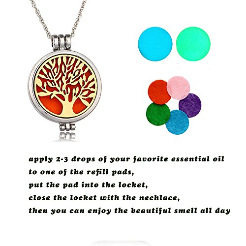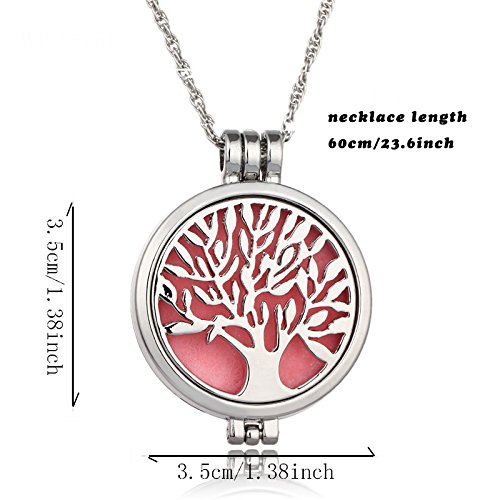Dproptel Aromatherapy Necklace-Stainless Steel Tree of Life Locket Pendant with Refill Pads for Essial Essential Oil Theraphy Perfume Diffuser