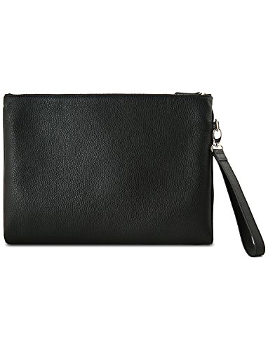 Product Description A sleek and yet deceivingly spacious folio that effortlessly organize your phone, wallet, and accessories in two zippered compartments. The folio can easily fit daily essentials alongside an iPad Pro. Worn tucked under an arm or carried with the detachable wristlet, its tweed wool interior lining will add extra dapper to your daily ensemble. 0
