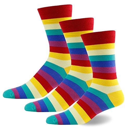 -. Binding : Apparel -. Brand : diwollsam -. Color : 3 Pairs-multicolor 1 -. Department : mens -. EAN : 7424618027687 -. Feature : Versatility: Best novelty and cool luxury gifts for your friends, boyfriends, and family members on Valentine's Day, Christmas, Thanksgiving, Halloween, Birthday. Also, the patterned cotton dress socks could match casual outfits, jeans, sports sneakers, even wedding groomsmen dressier suits, etc. / Comfort & Cool: diwollsam men's fun socks are constructed to look good and built to last. The high quality construction gives these cool dress socks extra durability and flexibility during wear. Premium cotton material makes feet feel soft and comfortable. / Art & Fashion Pattern: diwollsam fashion colorful dress socks have various art and unique patterns for your different taste. Argyle, paisley, dots, stripes...Socks aren't immune from the pattern fever and for good reason- colorful socks add a unique punch to any outfit, from dress trousers to casual jeans. / Size: One size fits most people. Fit US Men's shoe size 6-11. Fit US Women's shoe size 8-11. Mid-calf length, specific pull-up length depends on the size for your calves. / Buy With Confidence: 30-Day Money Back Guarantee. We accept no-reason return or refund. Totally worry-free! -. IsAdultProduct : 0 -. Model : DWS002RS3 -. ProductGroup : Apparel -. ProductTypeName : SOCKSHOSIERY -. Size : Free -. Title : Men's Casual Dress Socks, Diwollsam Rainbow Patterned Stripped Novelty Colorful Crew Socks