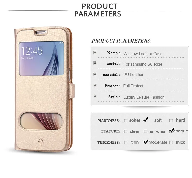 Features:Window Case Ultra Flip Leather Stand Case For Samsung S6 Edge S5 S4