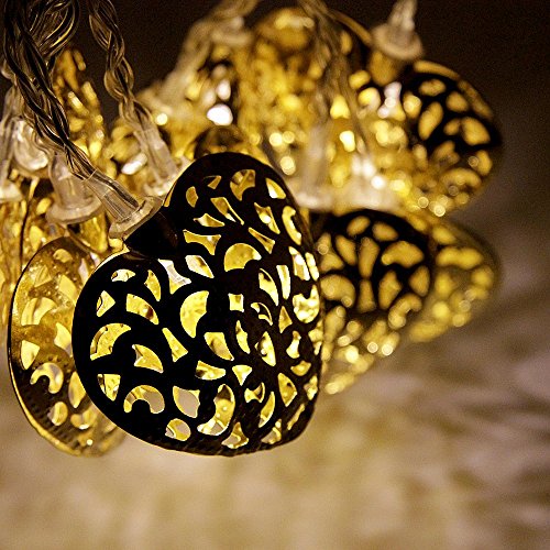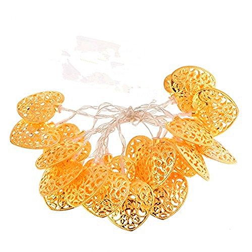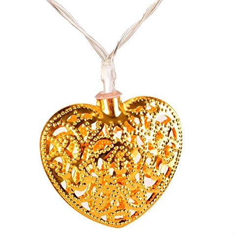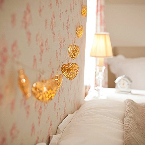 - Feature : 16.4ft wire length, 20 pieces of heart-shaped hollow metal ball, non-toxic and eco-friendly. / 20 warm white LED bulbs create the romantic atmosphere for parties and a soft sleeping light effect.. / 80% more energy efficient saving compared to traditional string lights, 0.05W/bulb, 1W/set. / 10 times longer lifespan compared to traditional light sources. parallel design: continues working if any one bulb goes out. / Great decoration for Christmas, birthday parties, weddings, gardens, rooms and other celebration occasions, both indoor and outdoor use.