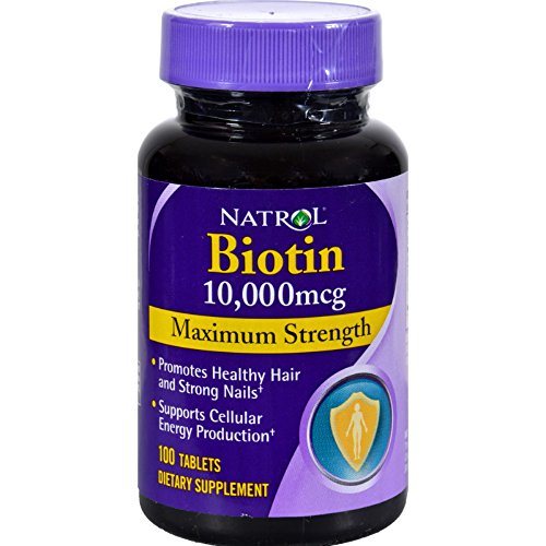 Studio : NATROL Publisher : NATROL Binding : Health and Beauty Product Description Natrol Biotin supports healthy luxurious hair, beautiful skin, and strong nails, in addition to energy production. A water-soluble B-complex vitamin, biotin is necessary for cell growth and the production and metabolism of fat into amino acids. Natrol Biotin provides 10,000 mcg to help ensure the daily need for this essential nutrient is met. 100% Drug Free! Maximum dose! Natrol makes this product in the U.S.A.! 0