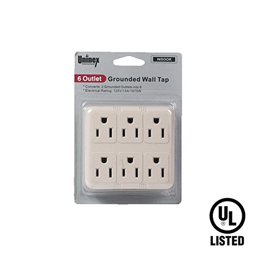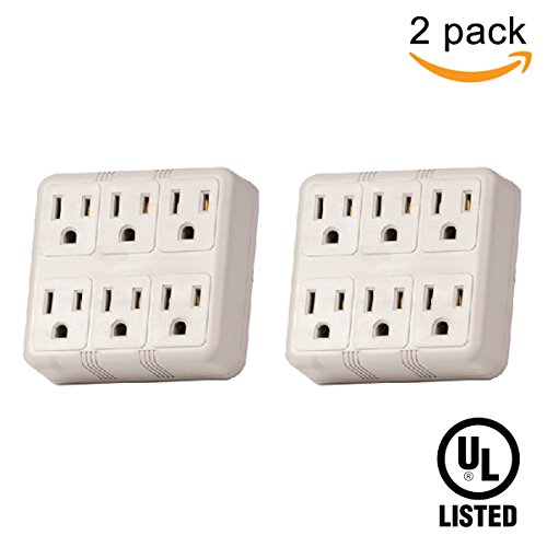 (2 Pack) Uninex Grounded Wall Tap 6 Outlet AC Power Adapter Electrical Plug UL