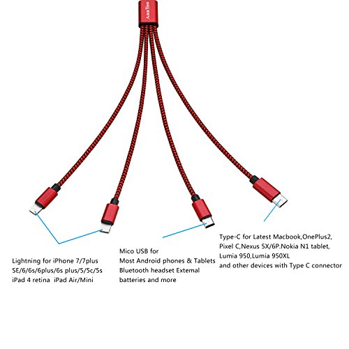 Multi USB Charging cable Compatible Device: 4-in-1 charging cable Apply to Most micro USB-enabled devices,including select apple 5/6/7series, android,HTC,Nokia,LG,Blackberry,Sony,MP3 players,GPS,Camera and most smartphones etc