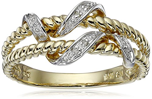-. Feature : 10k yellow gold ring featuring ropelike double shank and silver-tone twists with diamond accents / All our diamond suppliers confirm that they comply with the Kimberley Process to ensure that their diamonds are conflict free. / Imported