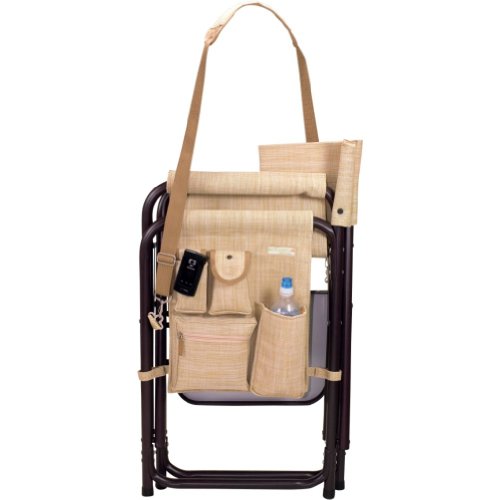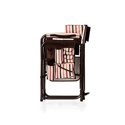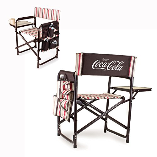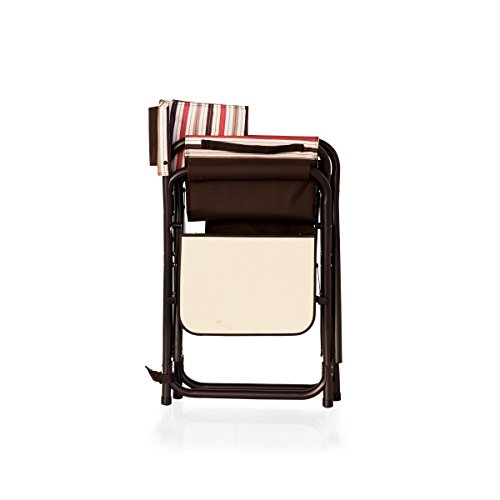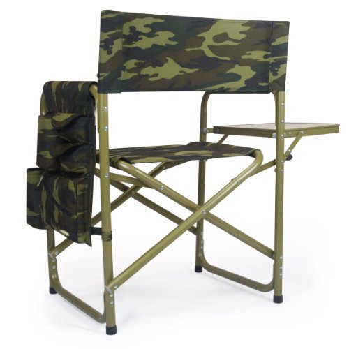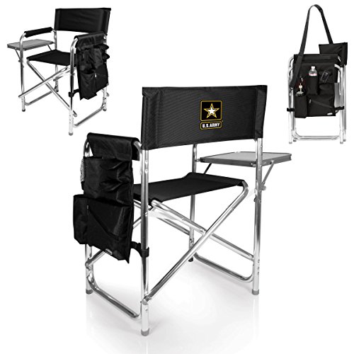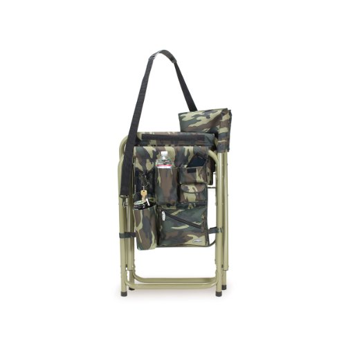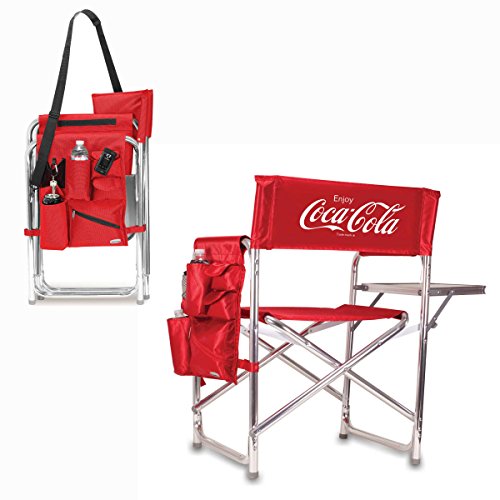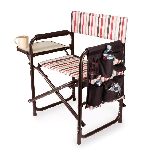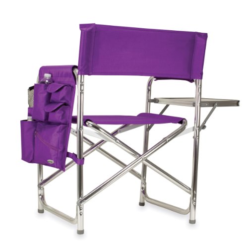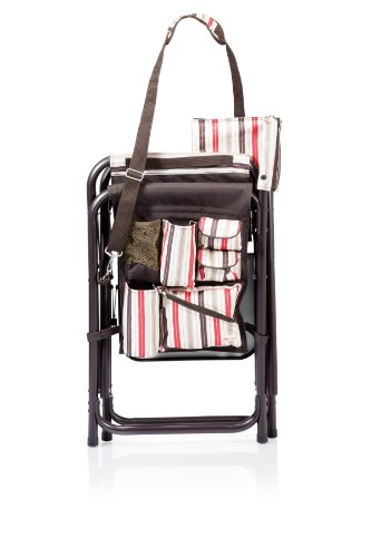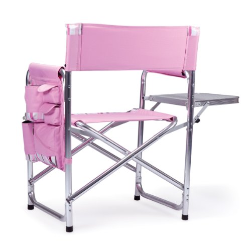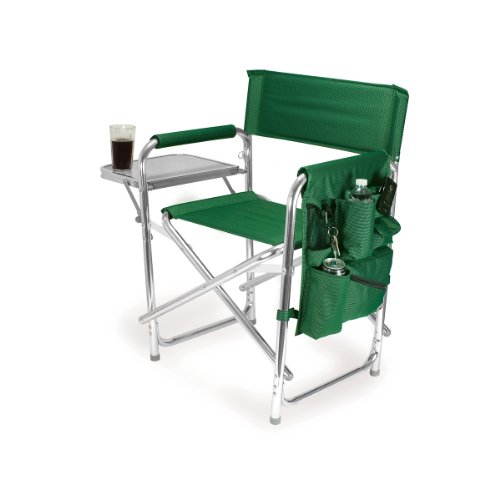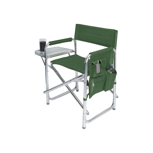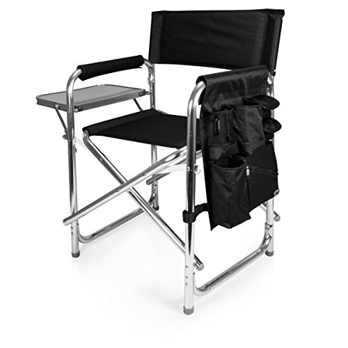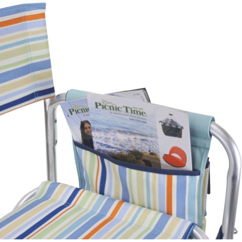 Studio : Picnic Time Publisher : Picnic Time Binding : Lawn Patio Product Description This aqua blue Sports Chair by Picnic Time is the ultimate spectator chair. It's a lightweight, portable folding chair with a sturdy aluminum frame that has an adjustable shoulder strap for easy carrying. If you prefer not to use the shoulder strap, the chair also has two sturdy webbing handles that come into view when the chair is folded. The extra-wide seat is 19-1/2 inches, and is made of durable 600D polyester with padding for extra comfort, while the armrests padded as well, for optimal relaxation. On the side of the chair is an accessories panel that includes a variety of pockets to hold such items as your cell phone, sunglasses, magazines, or a scorekeeper's pad. It also includes an insulated bottled beverage pouch and a zippered security pocket to keep valuables out of plain view. A convenient side table folds out and will hold up to ten pounds of weight, making it perfect for holding food or drinks. The Picnic Time Sports Chair makes a perfect gift for those who enjoy spectator sports, RV-ing, and camping. Maximum weight capacity for the chair is 300 lbs. 0