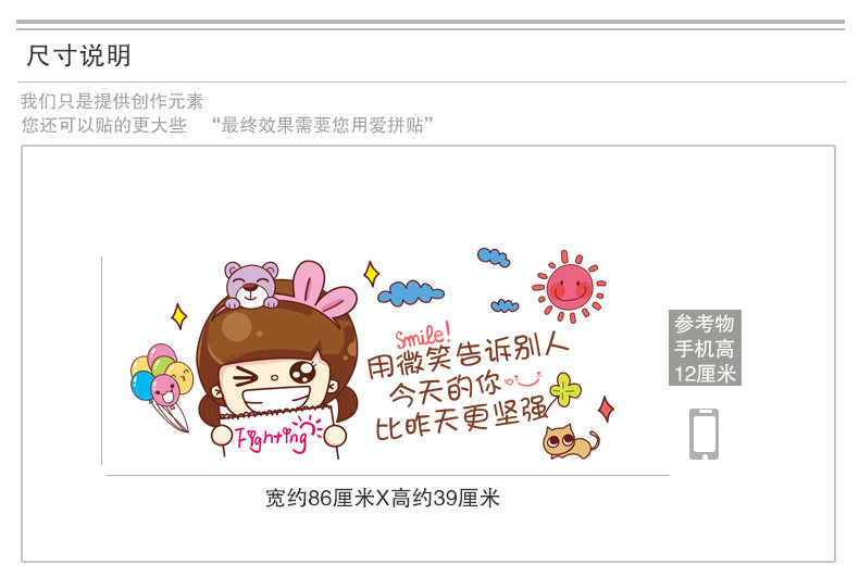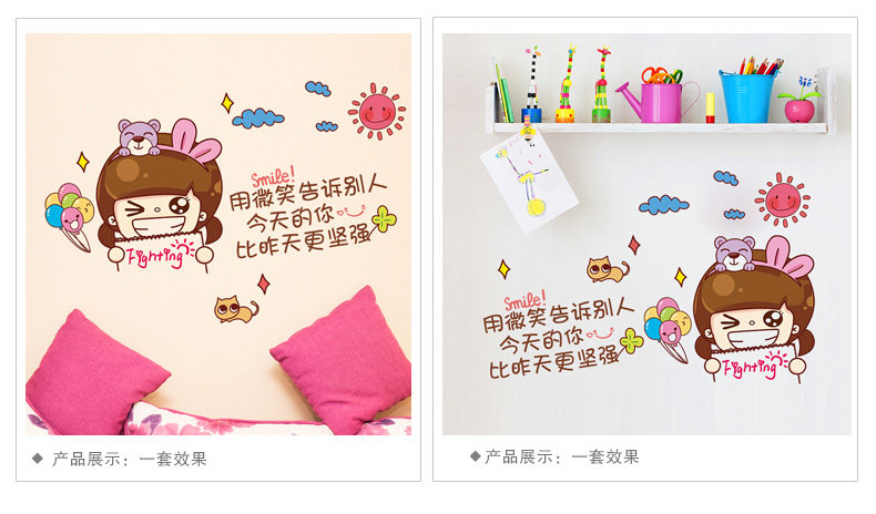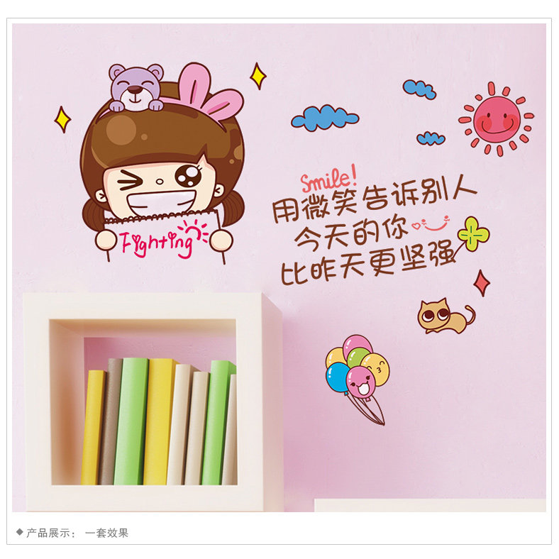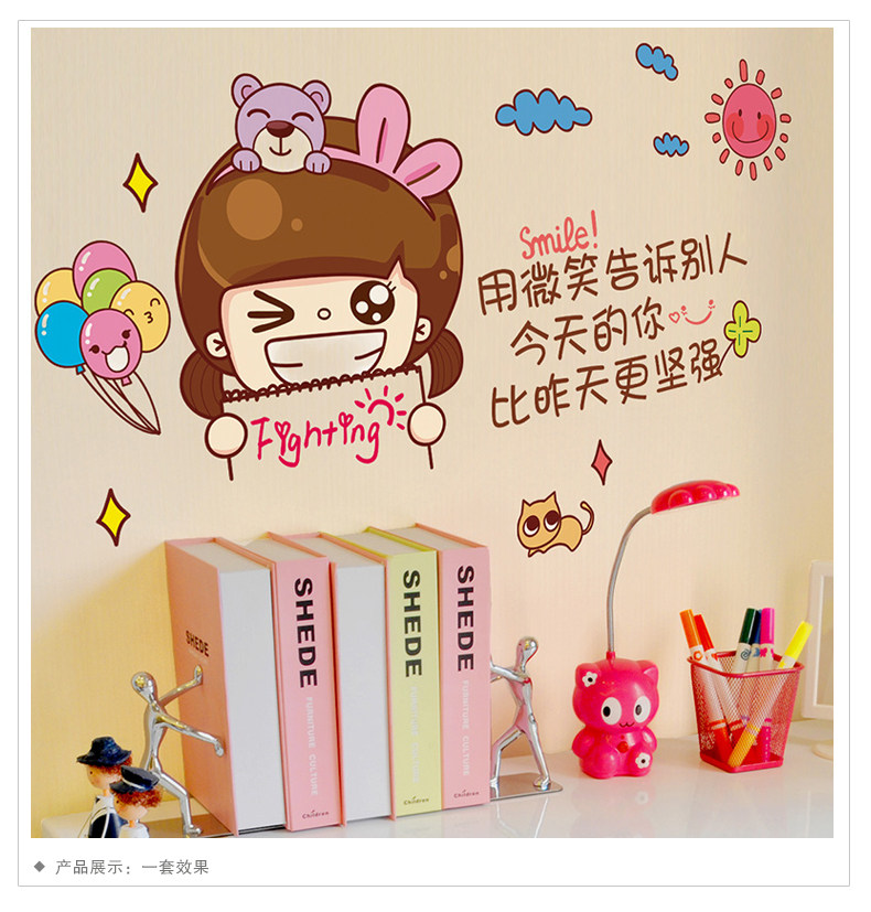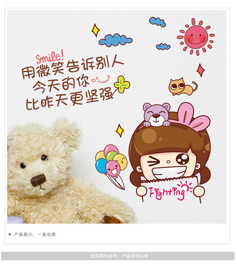 卡通励志墙贴纸卧室宿舍背景墙贴画微笑的坚强墙纸自粘房间装饰品