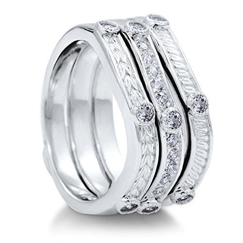 -. Title : BERRICLE Sterling Silver 0.51 ct.tw Cubic Zirconia CZ Fashion Right Hand Stackable Ring Set