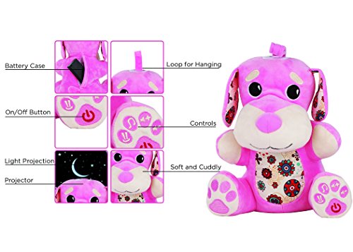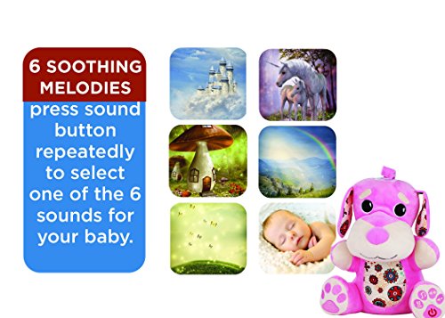 - BABY MUSICAL STAR PROJECTOR SOUND MACHINE:This cute Pink plush puppy is the latest innovation in sleep sound machines for infants, Babies and toddlers. Featuring a built-in music player, a star light projector, this unique device offers a sensory sensation for the entire family!