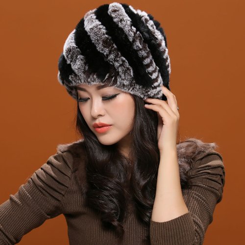 MINGXINTECH real rabbit fur winter hat for ladies womens cossak russian style cap