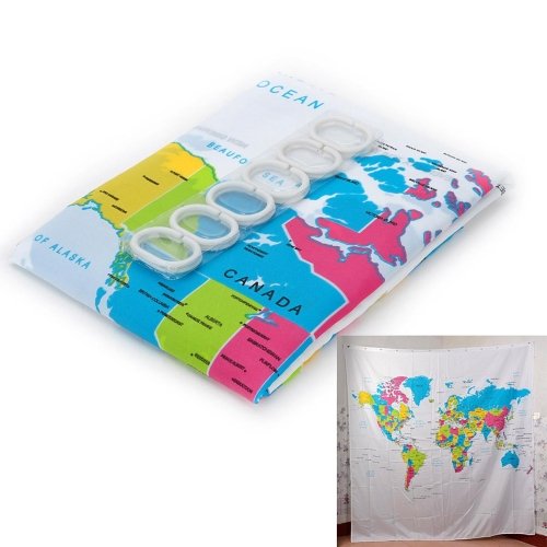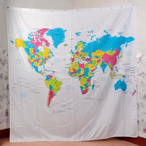 Lightinthebox "The Map of the World" Creative European Style Dacron Bath Shower Curtain - White + Blue