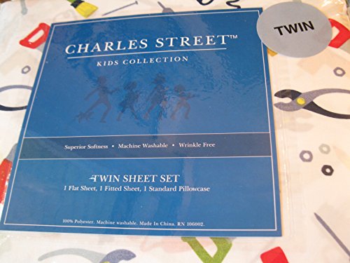 Charles Street 3 Piece TWIN Sheet Set Carpenter Tools Pliers Saws Drills Rulers