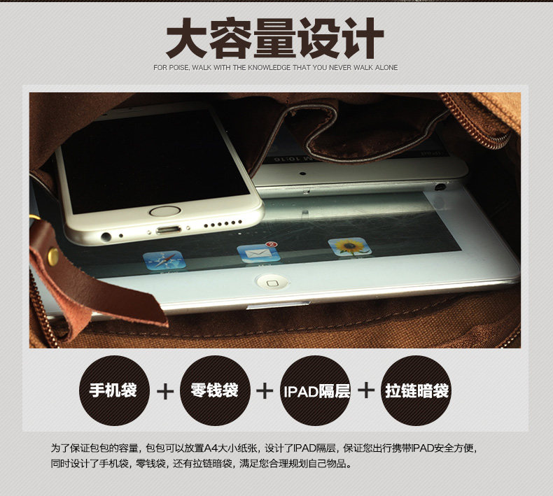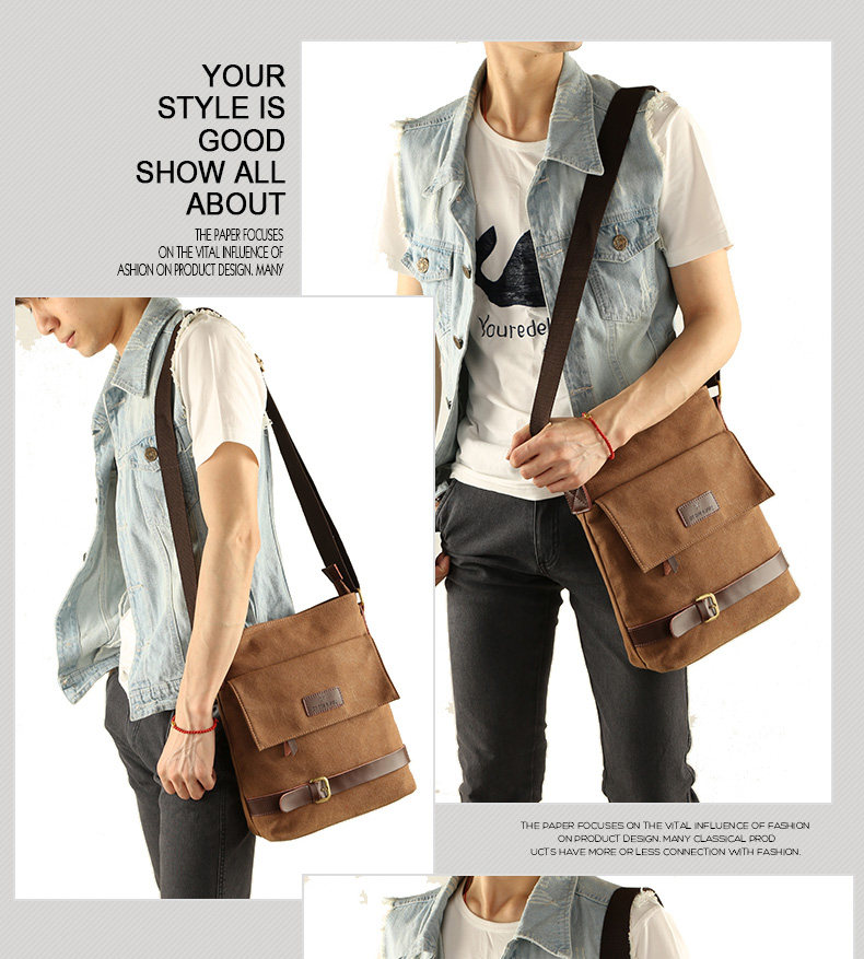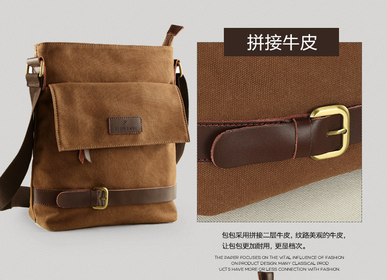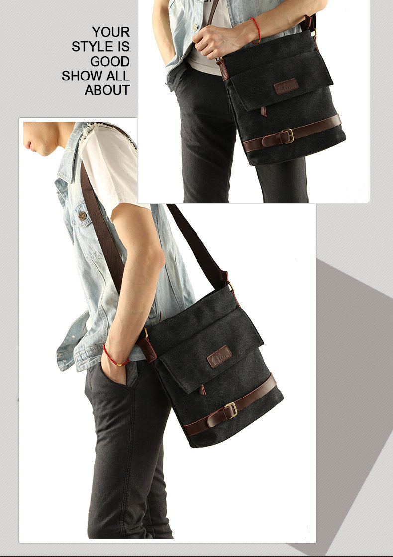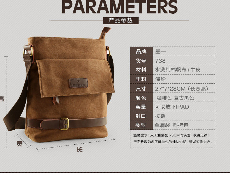 墨一复古潮流帆布包休闲单肩包男包户外斜挎包男士商务包斜背包