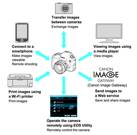 | Remote Operation using EOS Utility | Remote control functions and image viewing functions of EOS Utility can be used via a wireless LAN | |