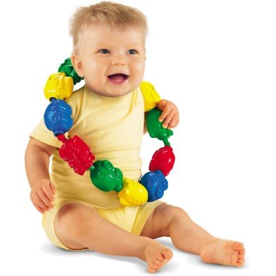 -. Feature : Snap them together and pull them apart, over and over again / Babies love repetitive play, and these brightly-colored beads offer stimulating fun while strengthening developing skills / There's even a bright, shiny surP.R.Ise with rattling beads inside / It's fundamental play that enriches baby's development-in a brilliant way / Age Range 6 to 36 Months