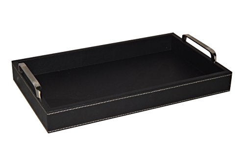 Cheung's 4559 Faux Leather Tray with Side Chrome Handles and Threaded Trim| Black