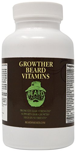 Growther from Beard Farmer Ranked #1 beard product for best beard growing supplement. Have you been looking for beard vitamins to grow a full beard? Do you want the best beard you can grow? Finally a daily multivitamin to support your ultimate beard. Our formula is targeted for Men With Beards. A richer greater beard in just one bottle guaranteed! Ranked #1 beard product for best beard growing vitamin. Ultimate Beard Nutrients - Packed with Beard Support Vitamins Vitamin A, Vitamin C, Vitamin D3, Vitamin E, Vitamin B1, Riboflavin, Niacin, Vitamin B6, Folic Acid, Vitamin B12, Biotin, Pantothenic Acid, Calcium, Iron, Phosphorus, Iodine, Magnesium, Zinc, Selenium, Manganese, Beard Proprietary Blend: Choline Bitartrate, Betaine Hydrochloride, Citrus Bioflavonoids, Inositol, PABA, RNA, Rutin. Millions of people around the world take vitamin supplements to help grow stronger and thicker hair. Join them and grow the Beard you have always wanted. Always contact a doctor before adding a vitamin complex into your diet. Store in a cool dry area.Feature