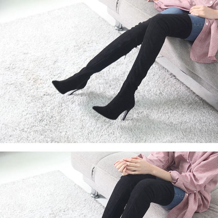 商品名:ロングブーツ レディース ピンヒール ポインテッドトゥ スエード調 2017 秋冬 ファッション 靴 婦人靴