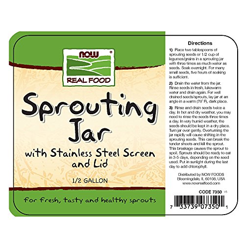 - Place two tablespoons of seeds or 1/2 cup of legumes/grains in the Now Foods Sprouting Jar with three times as much water as sees