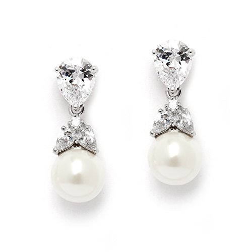 -. Feature : Mariell's Shimmering CZ & Pearl Wedding Earrings are a Flirty Take on a Bridal Classic / Plated in Platinum-Based Silver Rhodium and Measure 1" Long, Comfort Disc Backs / Stones are Top Quality AAAAA Grade CZ with Soft Ivory Pearls / Lifetime Guaranteed Silver Rhodium Plating with Enduring Lustre / Includes Beautiful Free Gift Box Ideal for Bridal, Wedding, Holiday or Anniversary Gifts