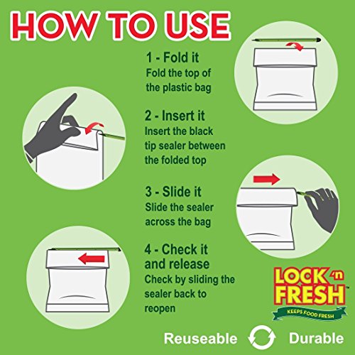 Works for all types of plastic bags: including Potato chip bags, Frozen Vegetable bags, Salad bags, candy, herbs & spices, and much more. Freezer and dishwasher safe