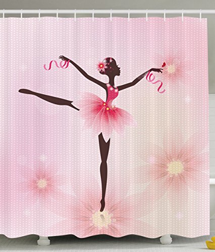 Ballerina Ballet Dancer Trees Polka Dots Artistic Gymnastic Ballet Skirt Art Lover Girl Nursery Bathroom Kids Decor for Teen Girls Design Polyester Fabric Shower Curtain, Pink Fuchsia Brown Ivory