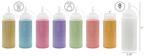 8-Pack Plastic Squeeze Squirt Bottles for Condiments with Attached Caps and Discrete Measurements,Ideal for Sauce, Ketchup, BBQ, Dressing, Paint, Workshop, Pancake Art, and More (8 OZ)