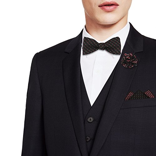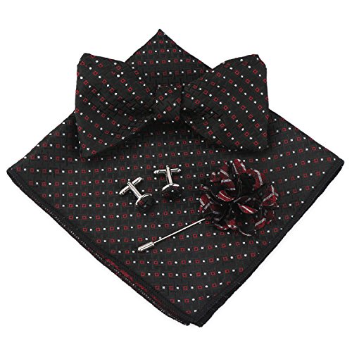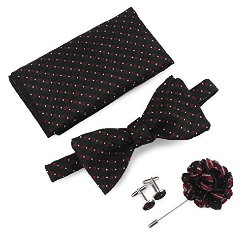 (Segbeauty)/Accessories/Ties/DIRECT FROM USA/Segbeauty Black Neat Grid Self-Tied Bow Tie and Cufflinks Pocket Square Set