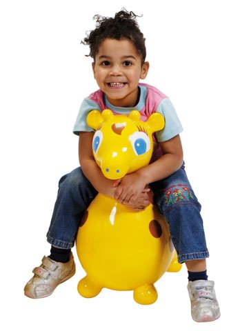 - Feature : Hopping promotes balance and coordination in children while providing a fun workout / Made from soft, super strong, latex-free, BPA-free and phthalate-free vinyl / Rocking base (sold separately) transforms hopping Gyffy into rocking Gyffy / 12" high at the saddle; ships boxed and uninflated - PUMP sold separately / For ages 3 to 5 years