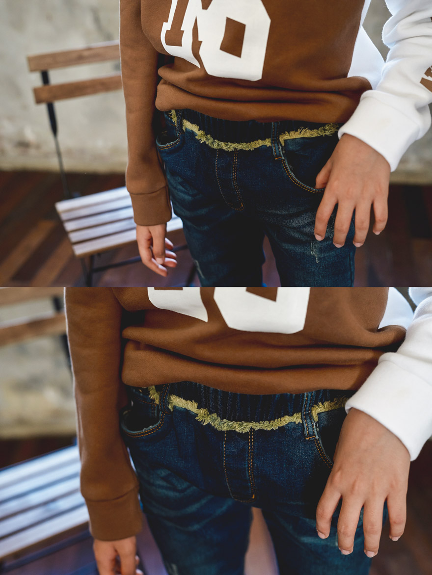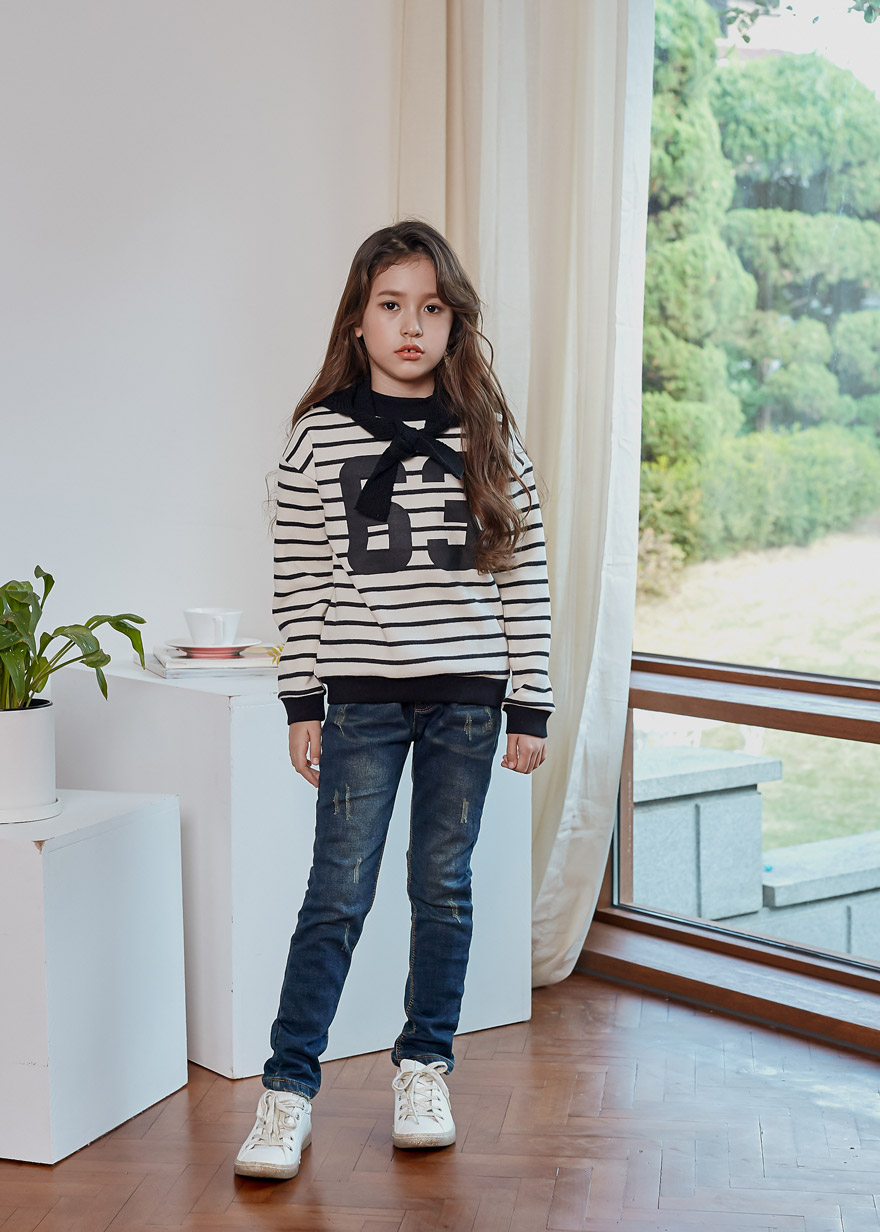 올리비안은 128cm에 20kg으로 다소 마른 체격이며, 딱 맞게 진청 9호를 착용하였고,