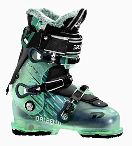 Studio : Dalbello Publisher : Dalbello Binding : Misc. Product Description The Dalbello Kyra 95 W is a great choice for the advanced to expert skier who has a medium width forefoot and medium to narrow leg shape. Dalbello's new My Fit System takes the level of customization up. The Shell has the ability to be baked then molded to match the shape of your foot for additional comfort and performance. The Kyra 95 has an InstaFit Liner that can also be heated. A Cabrio Design provides you with side to side rigidity with a smooth forward flex that drives energy towards your skis while enhancing responsiveness. Dalbello uses their Contour 4 Shell and a Center Balanced Stance that improves your efficiency when you are skiing on modern skis with rocker and large sidecuts. Features: Cabrio Design, Contour 4 Shell, Center Balanced Stance Actual Flex: 95, Cuff Alignment: Single, Warranty: One Year, Ski Boot Width: Medium (100-103mm), Flex: Stiff, Used: No, Ski/Walk: Yes, Forefoot Width: 102mm, Flex Adjustment: Yes, Buckle Count: 3, Category: Downhill, Ski Gear Intended Use: All Mountain, Instep Height: High, Calf Volume: Medium, Skill Range: Advanced - Expert, Model Year: 2018, Product ID: 476618, Model Number: DK95L7.GB.235, GTIN: 0616438702661 0