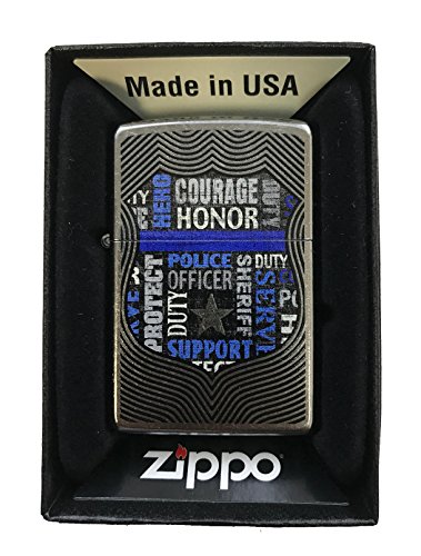 Zippo Custom Lighter - Collage Blue Line Police Badge Support - Street Chrome