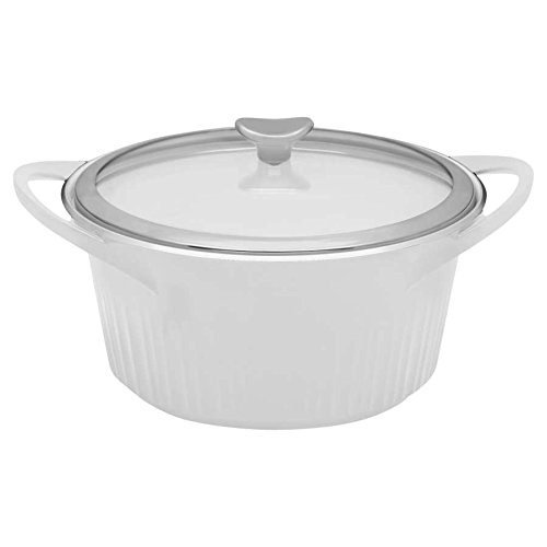 Don't let the size of this CorningWare Dutch oven fool you; it's lightweight so you can effortlessly carry it from the kitchen to the table. Plus, it has ergonomic handles that are easy to grasp. With its French White styling, the Dutch oven will be a beautiful addition to any table setting. The clear glass lid allows you to keep an eye on your favorite recipe.Feature