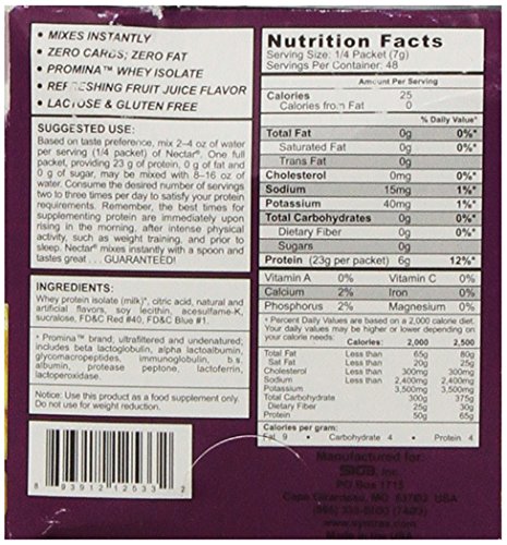 -. Title : Syntrax Nectar Grab N Go Whey Protein, Wild Grape, 12 Count (27g) Packets