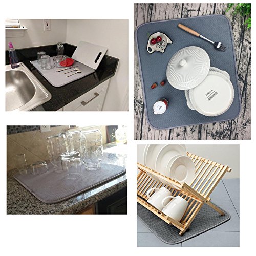 Patty Both 16×18 Inch Microfiber Dish Drying Mat,Kitchen Mat, Microfiber Absorbent Washable,Gray