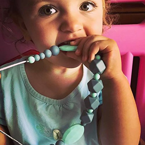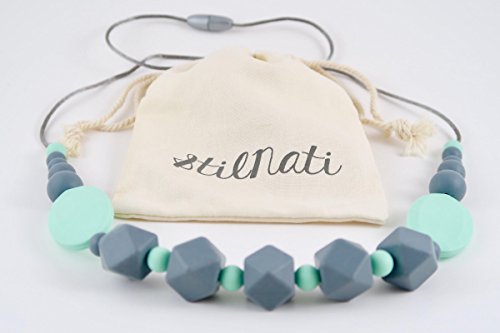 Stilnati baby teething necklace for mom to wear, silicone teething necklace, drolling and teething pain reduce properties, 100% BPA free, baby shower gift, nursing necklace