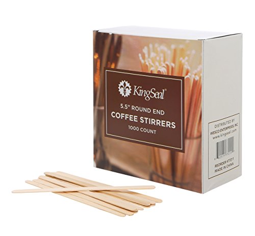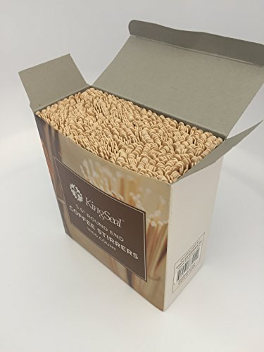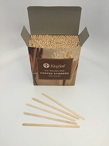 KingSeal Round End Wood Coffee Stirrers - 5.5 Inches, 10 Pack/1000 per Pack