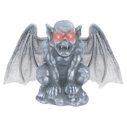 -. Feature : Decorate for Halloween with this Lighted Gargoyle. Each Foam Gargoyle Prop measures 12 1/2 inches high x 19 1/2 inches wide and requires two - AA batteries (not included).