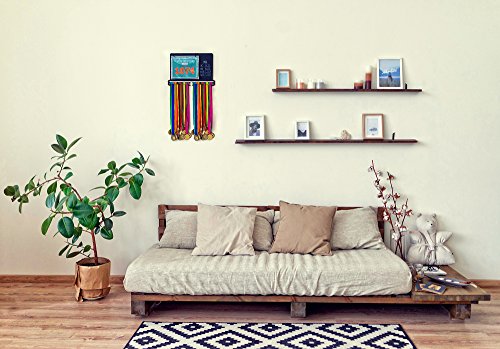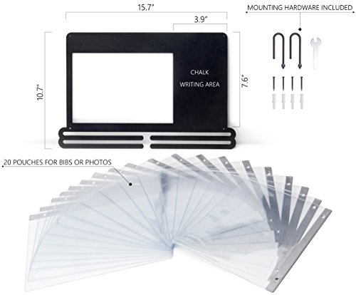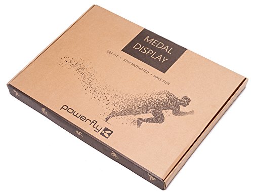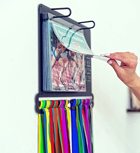Powerfly Medal Awards Display Rack - Wall Hang Medals Ribbon Trophy Holder with Chalk Area & 20 Bib Sleeves - Frame for Sports Medals, Taekwondo Belt, Marathon, Running, Race, Gymnastics, Triathlon