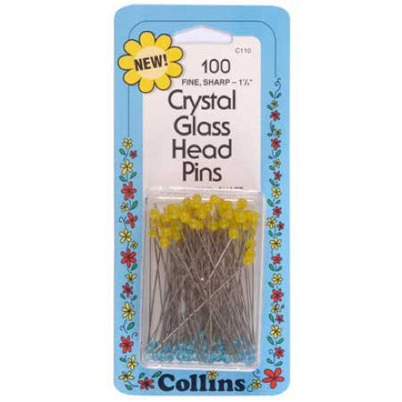 100PK OF CRYSTAL GLASS HEAD PINS, FINE SHARP-1 7/8, .5MM STEEL SHAFT