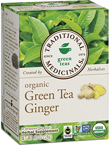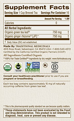 Traditional Medicinals Organic Green Tea Ginger Tea, 16 Tea Bags (Pack of 6)
