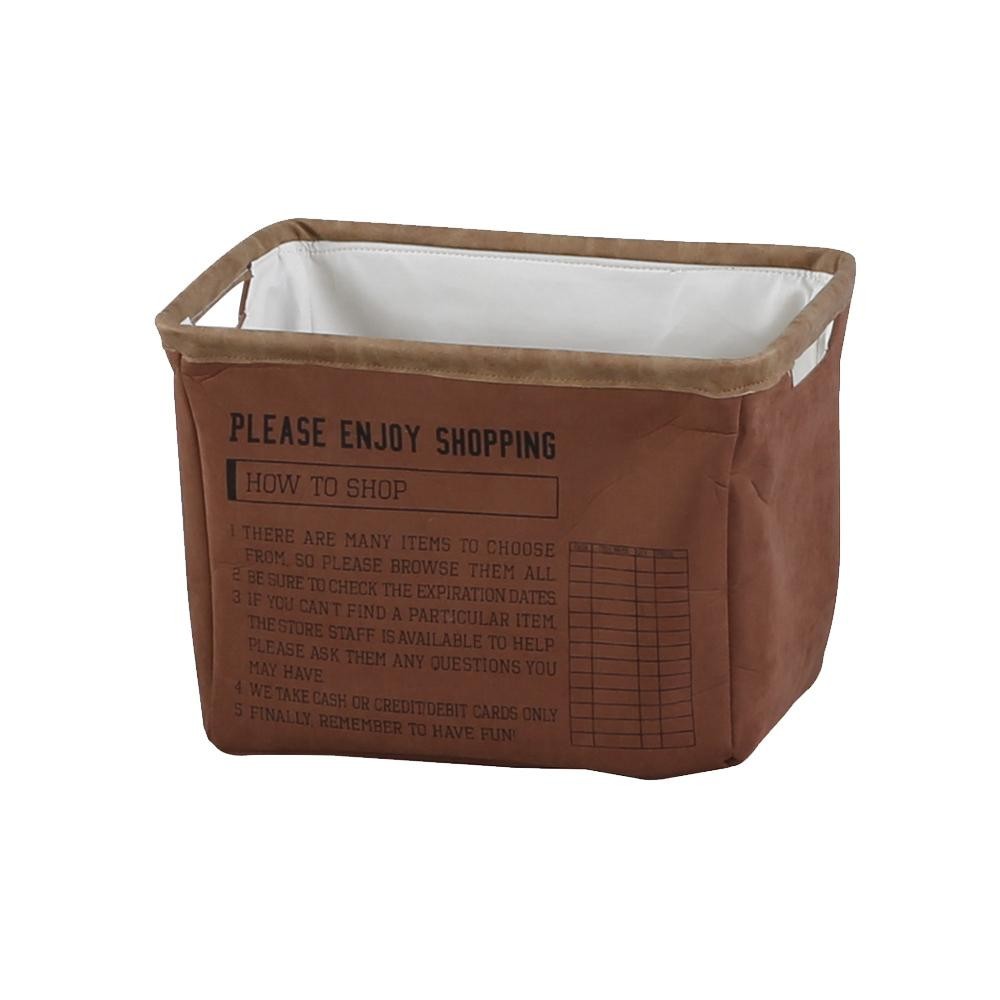| フェイクスウェード風生地で作られた触りごこちがソフトなボックスです。ショッピングシートをイメージしたプリントには買い物のメソッド(方法)が書かれていてユニークなデザインとなっています。 |