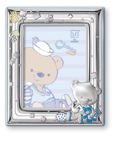 - The frame is hand made from 0.925 sterling silver featuring choco playing with a ball and his teddy bear; The back is made from wood (blue)