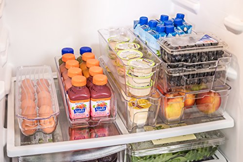 - CLEAR STACKABLE WITH HANDLES: By being able to stack the bins on top of each other you will be able to optimize your refrigerator, freezer and maximize your closet storage space. You will gain easy access with convenient built-in handles to help make transporting food products in and out of the refrigerator, freezer or storage space.