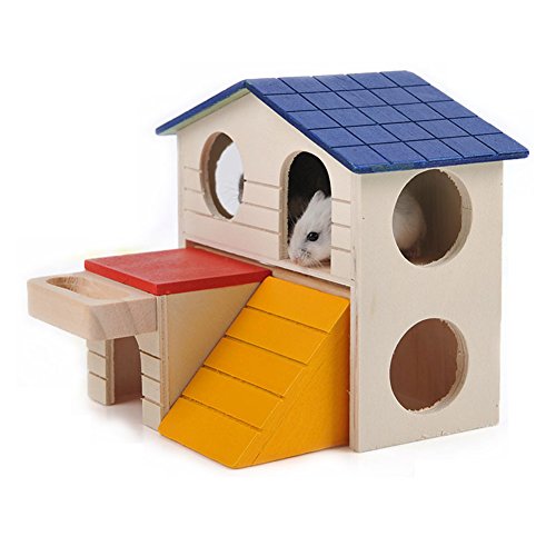 Bwogue Pet Small Animal Hideout Hamster House Deluxe Two Layers Wooden Hut Play Toys Chews