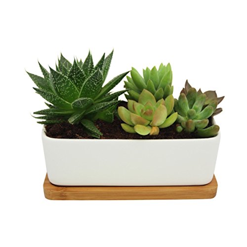 Best Horse Minimalist Flower Pot, White Ceramic Contemporary Decorative Succulent Plant Pot/ Cactus Plant Pot With Bamboo Tray