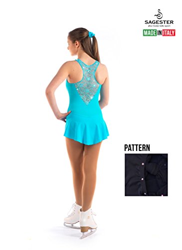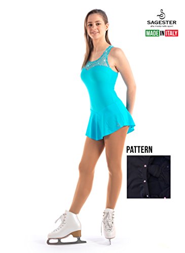 SAGESTER - Hand-made in Italy / Lace Dress for Figure Skating, Ice Skating, Roller Skating with SWAROVSKI crystals / Style: 137 / Available colors: Fuchsia Purple, Bay Blue, Black, White, Red