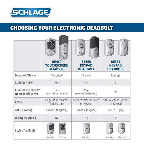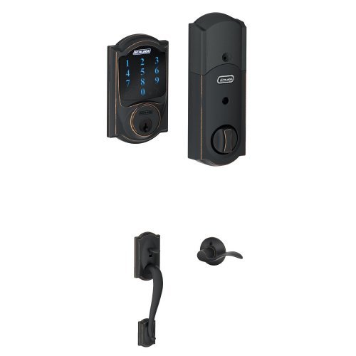 Schlage Connect Camelot Touchscreen Deadbolt with Built-In Alarm and Handleset Grip with Accent Lever, Aged Bronze, FE469NX ACC 716 CAM LH
